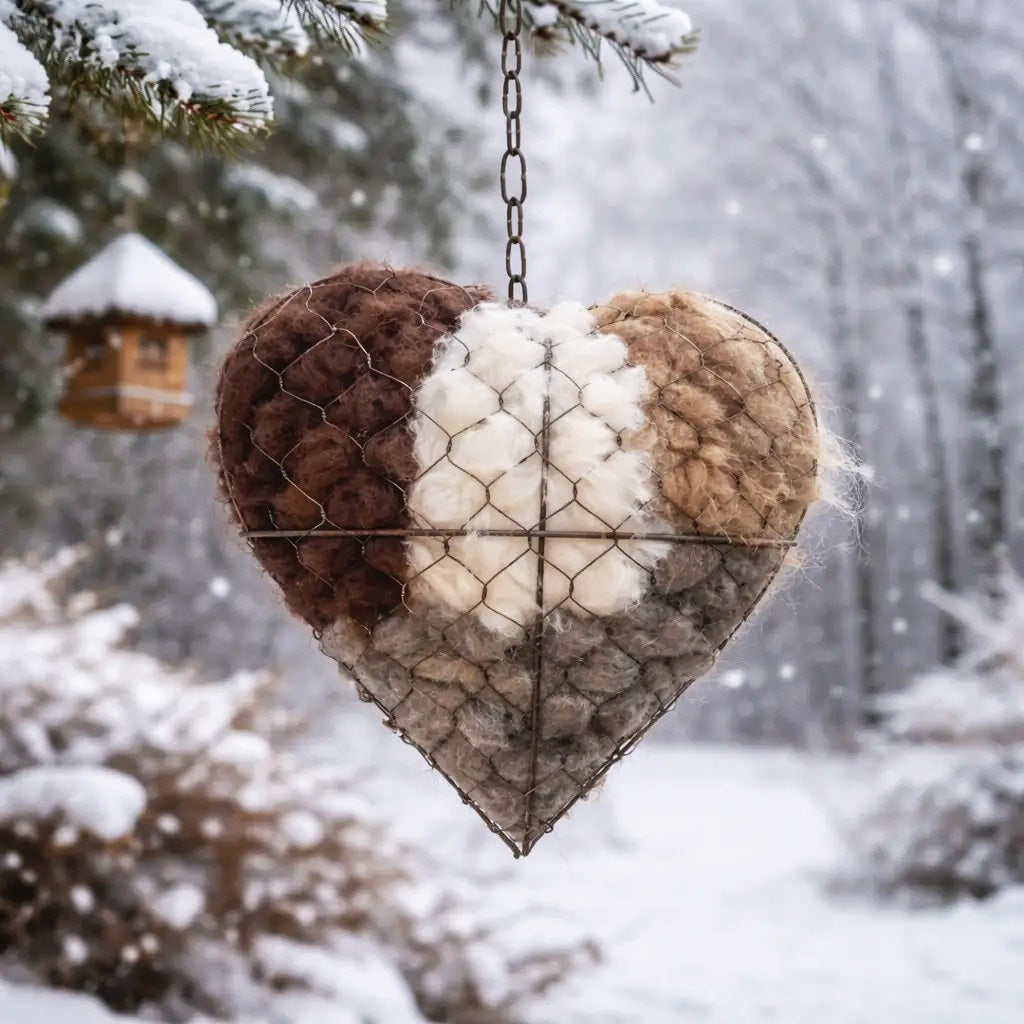 Bring nature closer to home with this Handmade Alpaca Fiber Bird Nesting Heart, a charming blend of rustic yard décor and bird-friendly functionality. Carefully crafted with luxuriously soft alpaca fiber sourced directly from our own alpaca ranch, this heart-shaped nesting aid helps birds build warmer, safer nests—especially during spring and colder seasons.