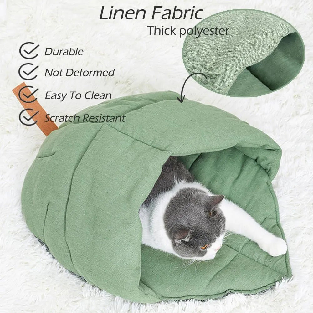 Soft and comfortable, this cat sleeping bag features linen fabric and thick polyester-filled cotton, providing a breathable and skin-friendly experience. It is completely free of harsh chemicals and synthetics, making it ideal for cats to play, nap, rest, relax, sleep, cuddle, burrow, or snuggle inside this warming bed.