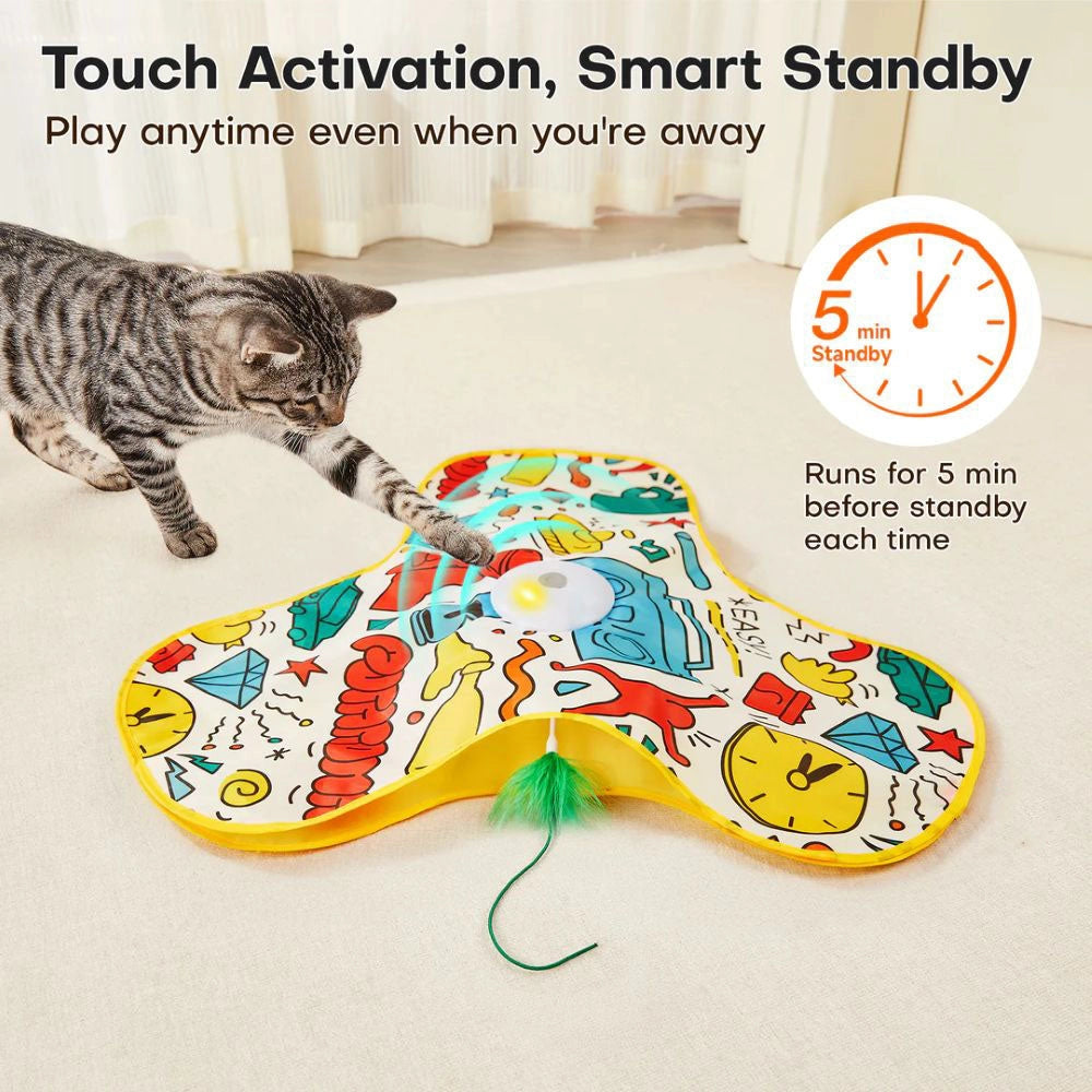 Smart Motion Sensor & Three Modes – Equipped with intelligent touch activation, this electronic toy allows your cat to self-play by simply touching the toy. Choose from three adjustable modes: normal, active, and interactive, keeping your cat energized and reducing boredom for hours of indoor fun and enrichment.