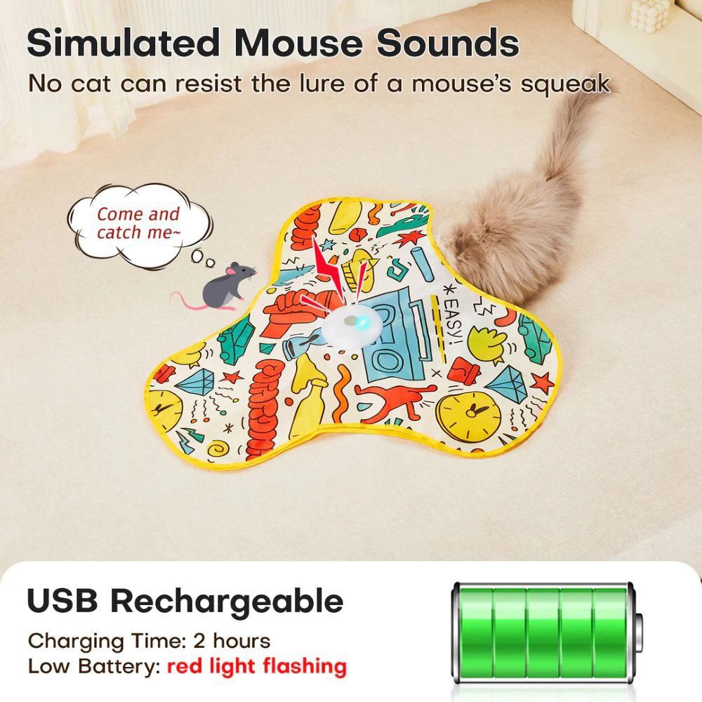 Realistic Mouse Sounds for Enhanced Play – The built-in speaker mimics a mouse’s squeak, triggering your kitty's natural hunting instincts. Combined with unpredictable feather movements, this toy creates an irresistible game of seek and chase, keeping your cats entertained and mentally stimulated even when they play alone.
